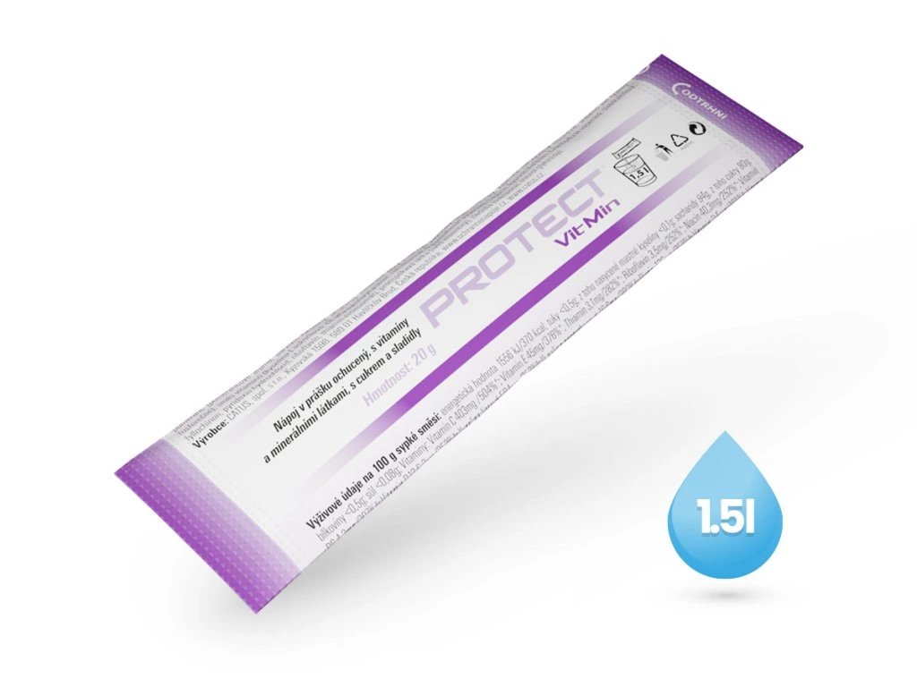 Certifikovaný ochranný nápoj v prášku ochucený, s vitaminy a minerálními látkami, s cukrem a sladidly.